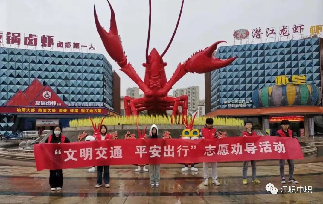 为有效维护潜江龙虾城的公共交通秩序,引导人民群众文明出行,创建和谐的交通环境。中职部的志愿者们在龙虾城积极参与“文明交通 平安出行”劝导志愿活动。