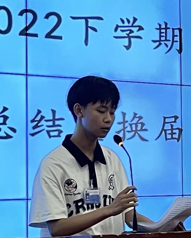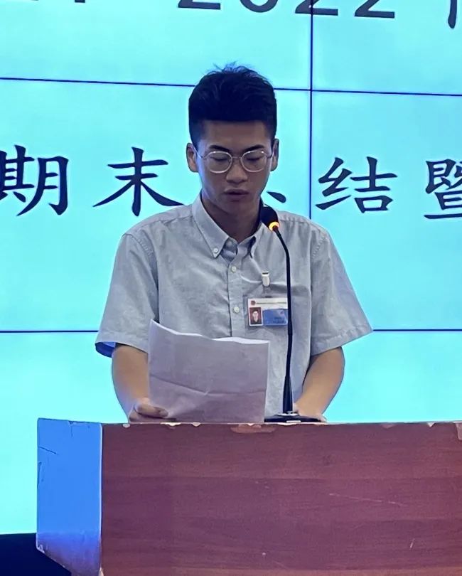 最后,赵凯老师进行总结讲话,他首先感谢20级所有干部这两年对中职部各项工作的付出,并对20级干部给予肯定,中职部这两年的平稳运作以及取得的成绩都离不开这一批干部的默默奉献。同时也对21级干部提出要求,要做到“传承、反思、探索、实践”;他希望21级所有干部可以拿好接力棒,在工作中传承好上一届的优秀品质,善于反思问题和不足,不断探索新的工作模式,脚踏实地在工作中成长,在实践中提高;珍惜在团总支学生会工作的机会,锐意进取、乘风破浪,书写团总支学生会工作的新篇章。
