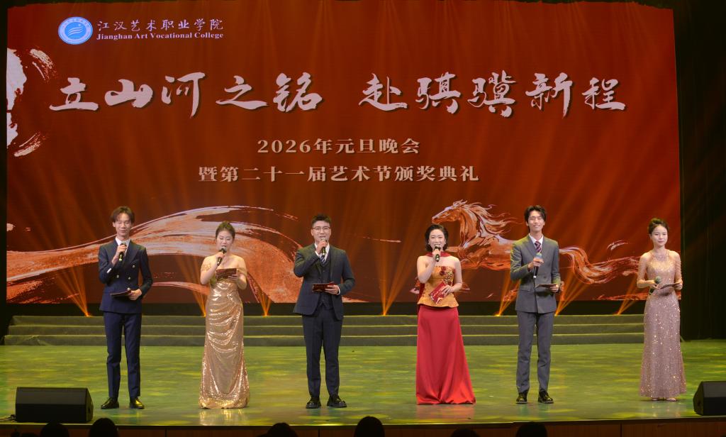 12月30日,beat365举办了“立山河之铭 赴骐骥新程”2026年元旦晚会暨第二十一届艺术节颁奖典礼。beat365在线体育官网登录入口党委副书记、校长程伦嵩;党委委员、纪委书记黄超;党委委员、副校长李伟;党委委员、副校长周剑波;以及各院部的老师与同学们齐聚一堂共同庆祝新岁。