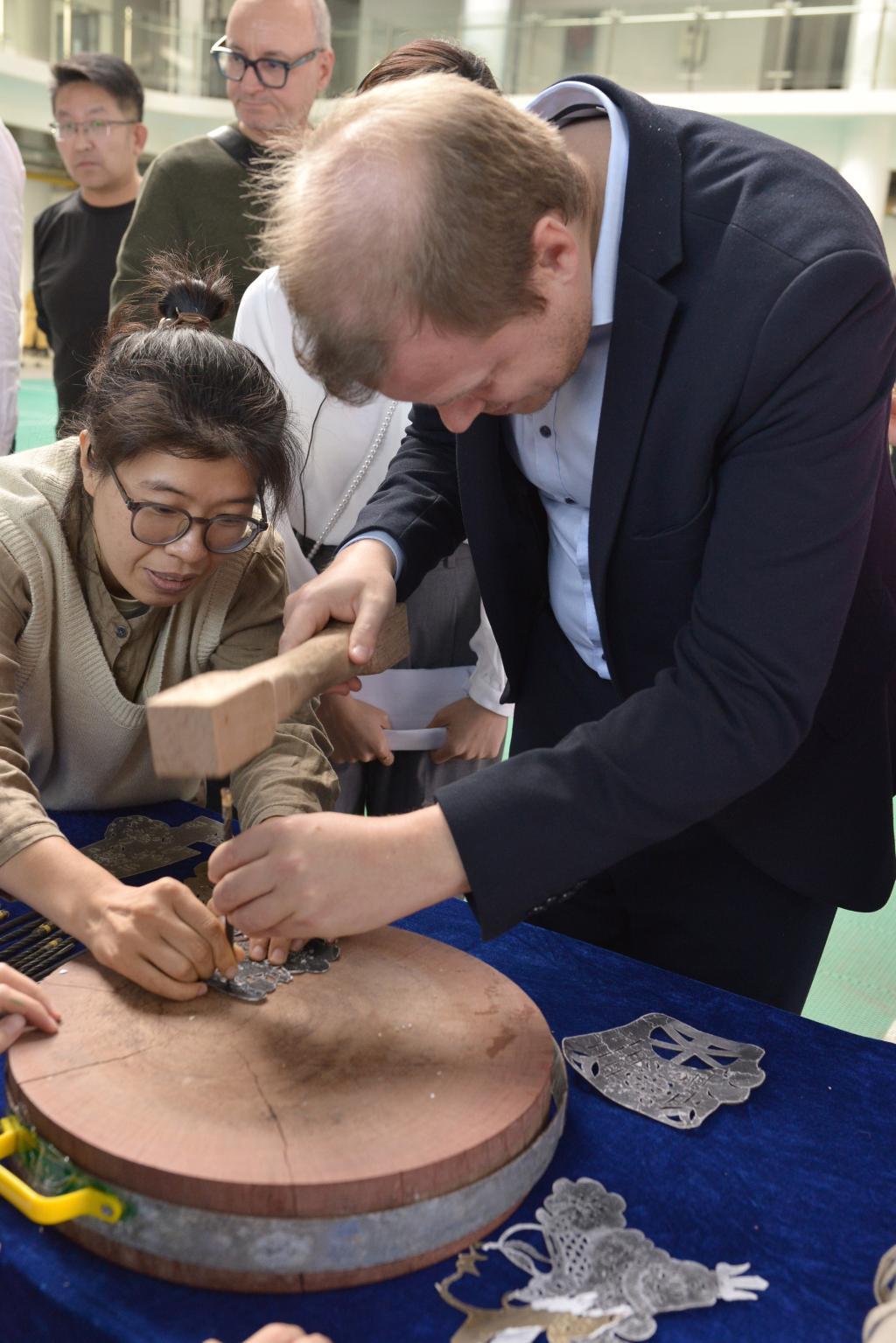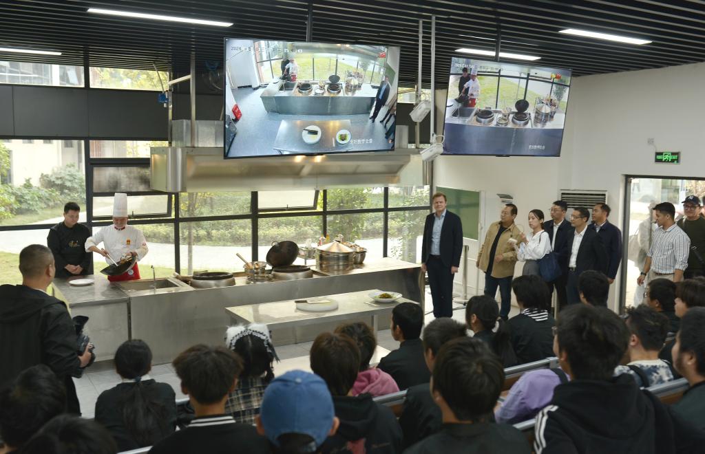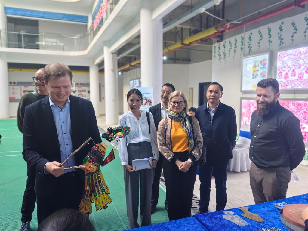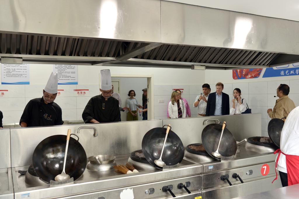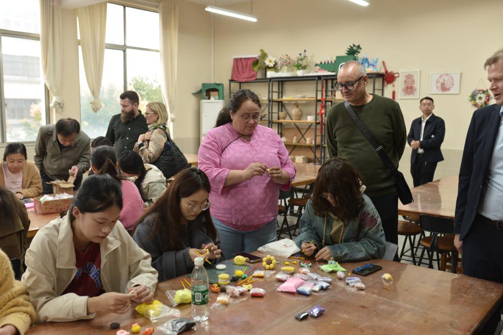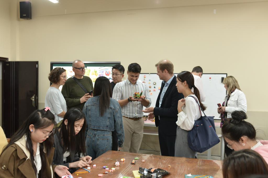 11月1日下午,德国海登海姆市迈克尔·萨洛蒙市长一行12人来beat365调研。在调研期间外国友人参观了beat365小龙虾烹饪实训基地、非遗传承中心和校史馆,观摩了beat365民族舞教学、手工教学、服装缝纫教学、茶艺教学,观看了学校非遗文艺节目演出和小学教育专业师范生技能作品展。