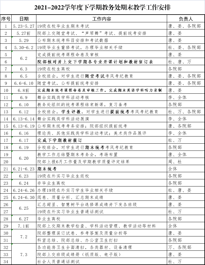 2021-2022学年度下学期教务处期末教学工作安排