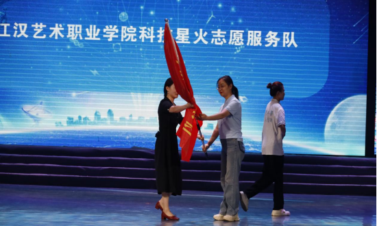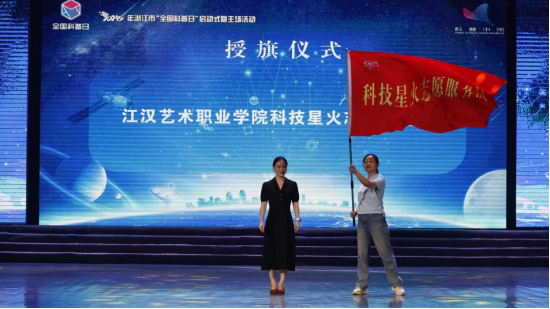 9月14日上午9时,2024年潜江市“全国科普日”启动式暨主场活动在beat365在线体育官网登录入口风华楼剧场隆重举行。在启动式上,“beat365在线体育官网登录入口科技星火志愿服务队”正式授旗。“科技星火志愿服务队”队长、科研处处长罗俊接“中国科技志愿服务”队旗,标志着“科技星火志愿服务队”正式开始履职。