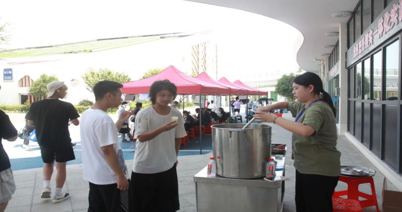 为进一步传递校园关怀,我们在报到点特别设置了“清凉服务站”,免费为远道而来的新生与家长提供学院自制的绿豆汤和酸梅汤。一碗碗清甜消暑的饮品,不仅是身体上的滋润,更是一份来自学院的诚挚问候,为这个微热的初秋,平添几分惬意与温情。