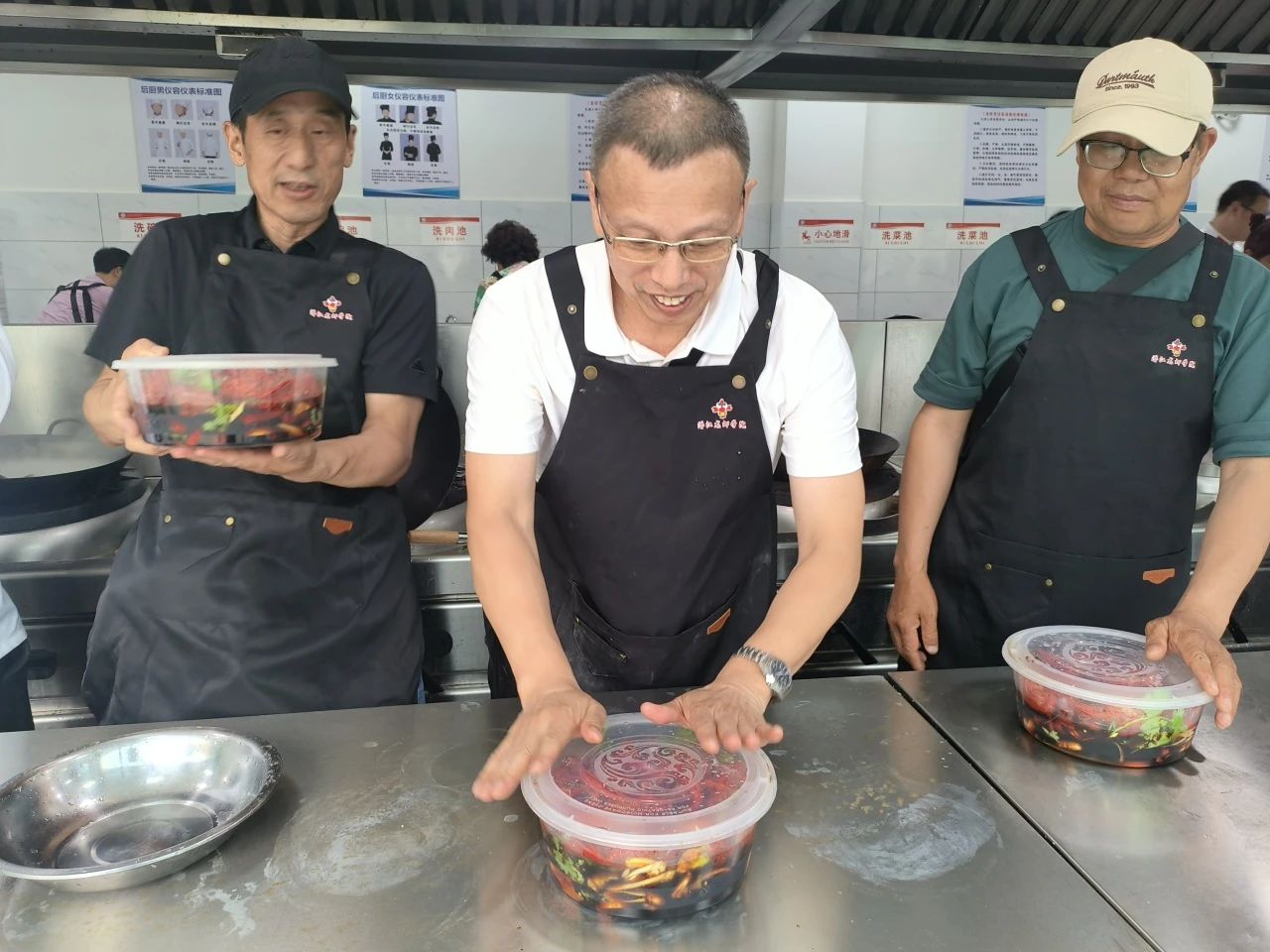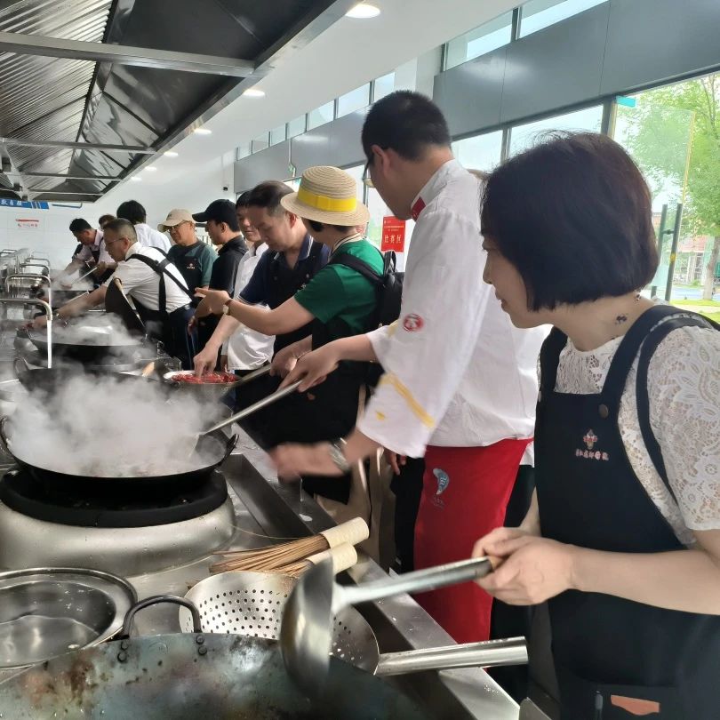 在袁辉老师的示范指导下,学员们穿上工作服走进烹饪实训室,亲自动手制作了柠檬泡泡虾。他们按照袁老师教授的步骤认真地操作,现场气氛热烈而有序。
