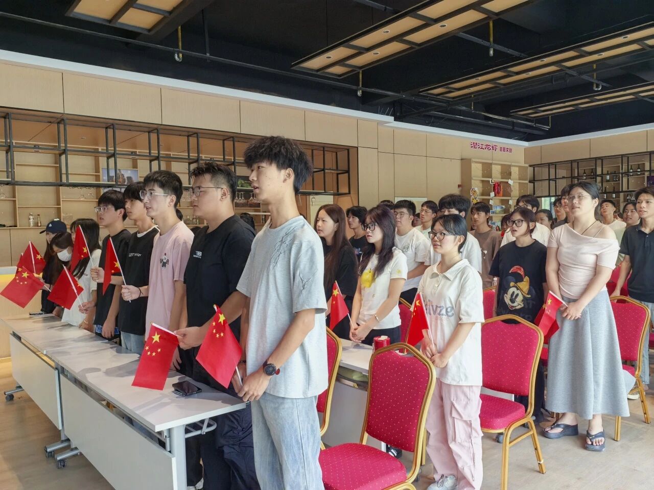 当庄严的国歌声响起,全体师生自发起立,行注目礼。这一刻,实训室内肃穆无声,每个人眼中闪烁着敬意与自豪,与千里之外的天安门广场同频共振,深切感受着祖国的强盛与民族的团结。