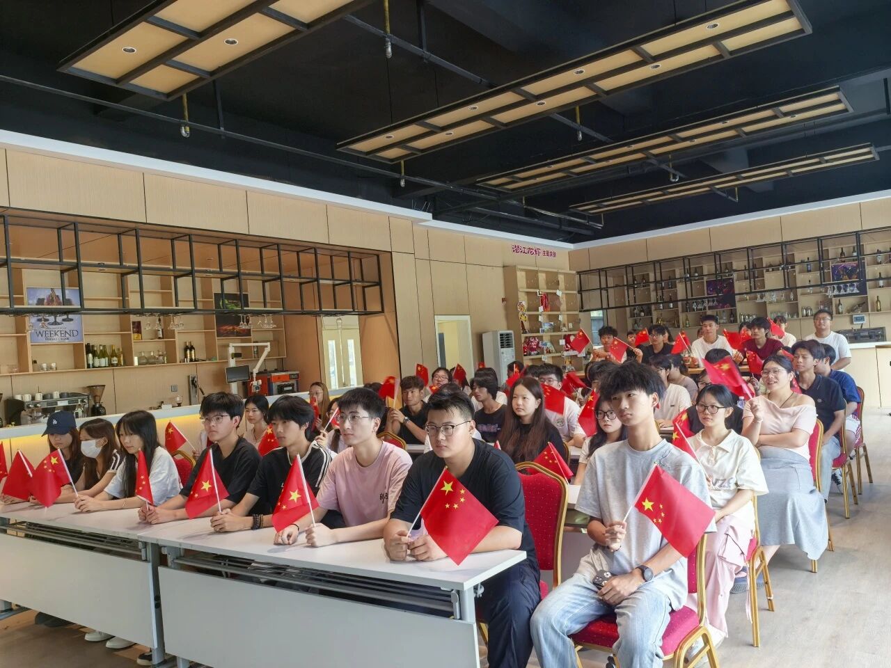 2025年9月3日,纪念中国人民抗日战争暨世界反法西斯战争胜利80周年大会在北京天安门广场隆重举行。同日上午8:45分,潜江龙虾学院酒水实训室内气氛庄重热烈,师生们提前抵达、身着整洁服装,安静有序地齐聚一堂,共同等待观看这场意义非凡的阅兵仪式直播。