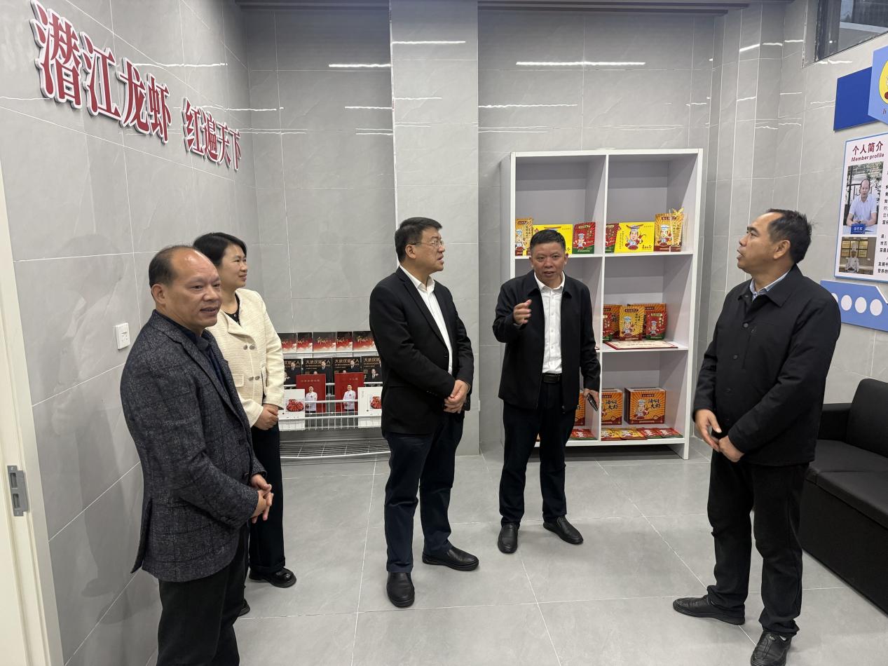 作为深度合作共建单位代表,beat365在线体育官网登录入口党委副书记、校长程伦嵩,潜江龙虾产业学院副院长喻正升,潜江油焖大虾非遗传承人、学院客座教授李代军共同参与接待,并就工作室建设进展及产业赋能成效作详细汇报。