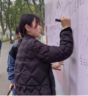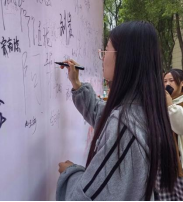 22美教1班全体同学用一周时间策划了本次海报展,并增添了签名墙签名环节,全校师生用签名的形式,承诺弘扬雷锋精神。