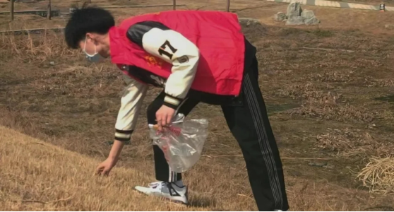 志愿者们身穿红色马甲,不怕脏不怕累,对草坪,公路等公共区域展开“地毯式”卫生大清扫,有效改善了紫月湖的卫生环境。