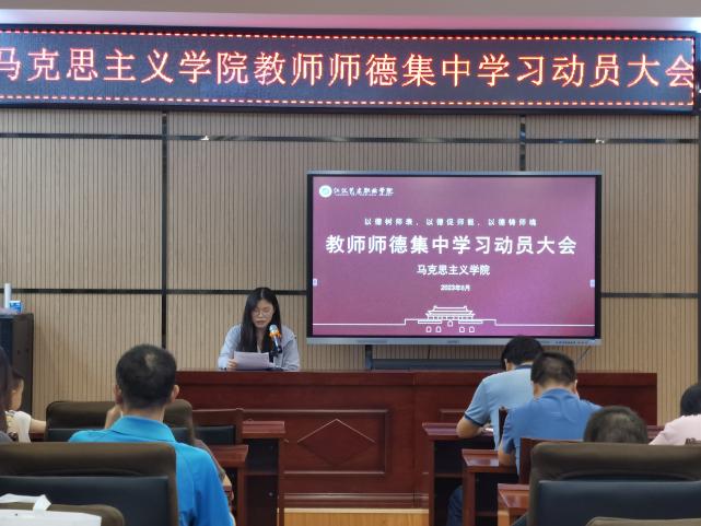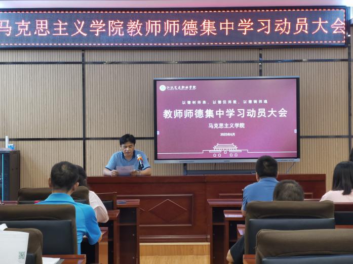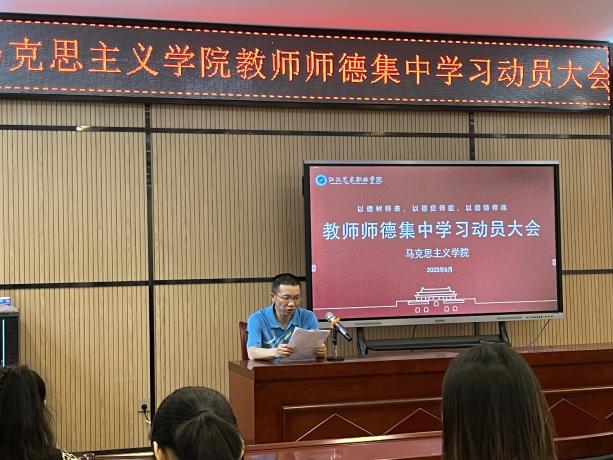 为深入学习贯彻习近平新时代中国特色社会主义思想,根据教育部有关师德集中学习教育统一部署的工作要求,马克思主义学院与公共课部副院长李其耘组织教师学习新时代教师职业行为十项准则等系列师德规范,列举了典型案例,围绕十项准则开展学习讨论,引导全院教师全面理解和准确把握其内涵要义,提升职业规范意识。