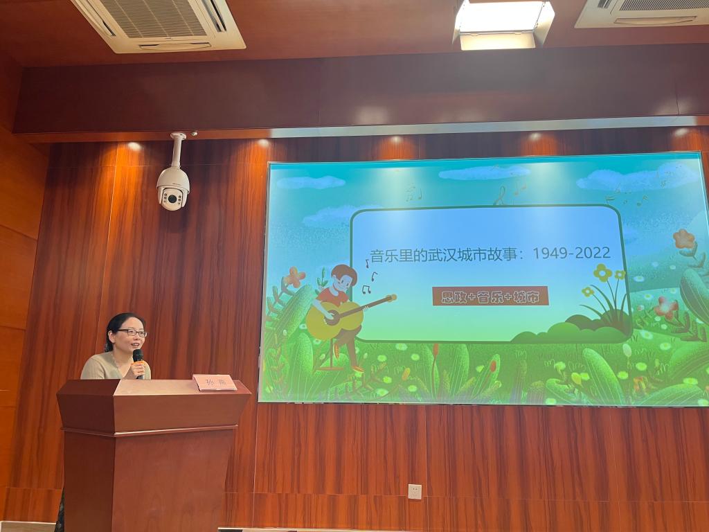 活动首先由武汉音乐学院马克思主义学院院长孙燕教授讲授以“音乐里的武汉城市故事”为主题的思政理论课。孙院长以三个历史时期为切入点,分别讲述了毛泽东与武钢、邓小平与武昌、习近平与东湖等三个故事。