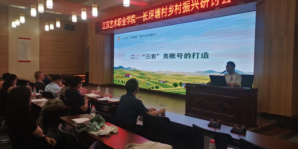 科研处副处长陈焕雄讲述“长坪塘村旅游开发调查报告”,介绍长坪塘村现状、长坪塘村旅游开发设计思路,为长坪塘村乡村振兴与旅游发展提出建议;设计学院教师段文军专题辅导“三农”类账号的打造,从人设定位、领域定位、视频定位等多方面,细致指导“三农”视频账号的创建、运营。