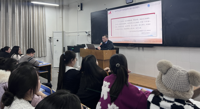 11月20日晚,学校党委委员、工会主席李伟来到学前教育学院,为学生讲授“形势与政策”课。学前教育学院党总支副书记王木祥参加活动。