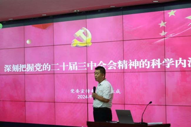 9月18日下午,学前教育学院在2号学术报告厅,开展9月政治理论学习会暨党的二十届三中全会精神宣讲会,邀请市委讲师团成员、学校党委宣传部部长于业成作辅导报告,院部全体教师、辅导员和部分学生干部代表参加活动。