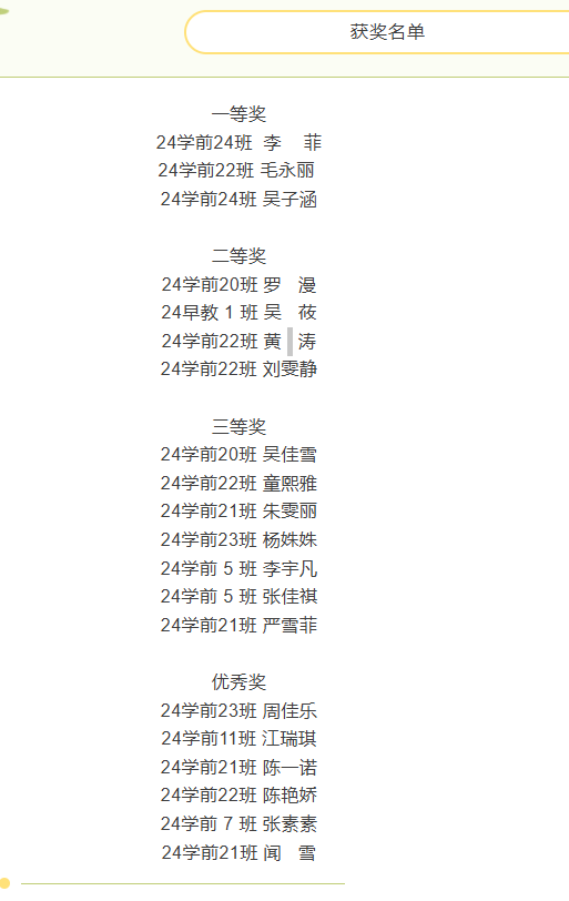 (通讯员 鲍亚妮)6月12日,学前教育学院“故事润童心”讲故事比赛决赛在2号报告厅圆满落幕。经过激烈角逐,24学前24班李菲等三名同学脱颖而出,荣获一等奖。