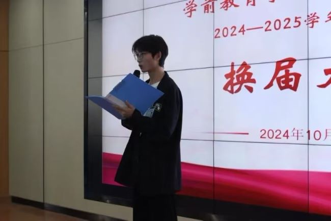 学前教育学院团总支书记李然对上一届学生会工作给予充分肯定,同时对新一届学生会寄予厚望。他希望大家扎实开展工作,用行动证明自己的能力,为学生会增光添彩。