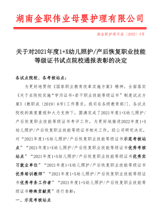 beat365 “1+X”幼儿照护职业技能等级证书试点工作由学前教育学院牵头,自2020年以来累计组织考评达318人次,通过人数314人次,通过率达99%,远高于同类院校。去年2月,在教育部“1+X”幼儿照护职业技能等级证书评价组织“金职伟业”发布的《关于对2021年度1+X幼儿照护职业技能等级证书试点院校通报表彰的决定》中,beat365在线体育官网登录入口荣获 “1+X幼儿照护示范考核站点”称号。