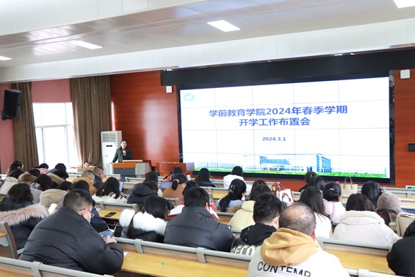 3月1日下午,学前教育学院在综合楼200室召开2024年春季学期开学工作部署会,全体教师、辅导员参加活动。