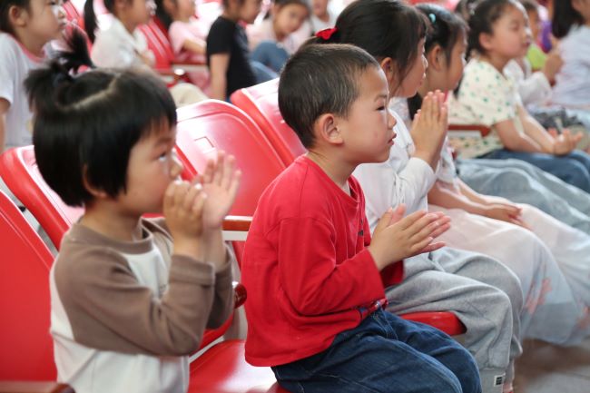 演出现场座无虚席。来自总口管理区多家幼儿园的小朋友聚精会神地观看演出,和故事里的人物一道感受着戏剧的独特魅力。