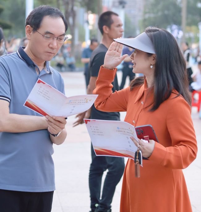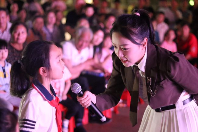 本次汇演精彩纷呈,包括歌唱、舞蹈、朗诵和极具幼教特色的故事讲述等多种形式。曾获得幼儿教育技能赛项国赛一等奖的“月亮姐姐”傅羡仙也来到了现场,为大家讲述关于“眼镜”的故事,还带来精心设计的手工作品作奖品。在场的孩子们听得十分入神,全程积极互动。也有不少市民踊跃参与,回答与普通话普及、文明出行等相关问题,将建设水乡园林精致之城的要求牢记于心。