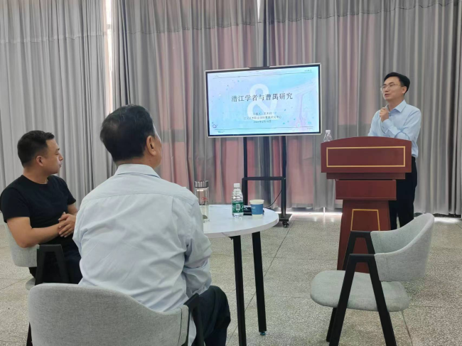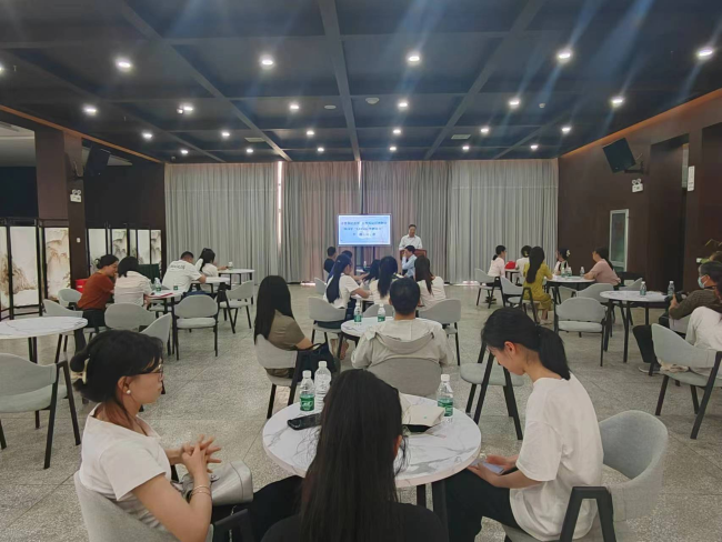 王老师以《潜江学者与曹禺研究》为题,从对潜江学者、曹禺研究的界定,潜江学者曹禺研究综述,江汉职院在曹禺研究上的付出和收获,对曹禺研究的未来展望等四个方面展开。他重点讲述了潜江学者从悲剧性、民族性和独特性等方面开展的曹禺研究,取得了丰硕的成果,为曹禺研究发出了潜江声音、作出了潜江贡献。在近两个小时的讲座中,王老师向现场观众宣传了潜江文化名片曹禺,展示了曹禺的戏剧成就和潜江本土的曹禺研究成果,也通过问卷调查进行互动,提升了观众参与度,加深了观众对曹禺和曹禺戏剧的理解。