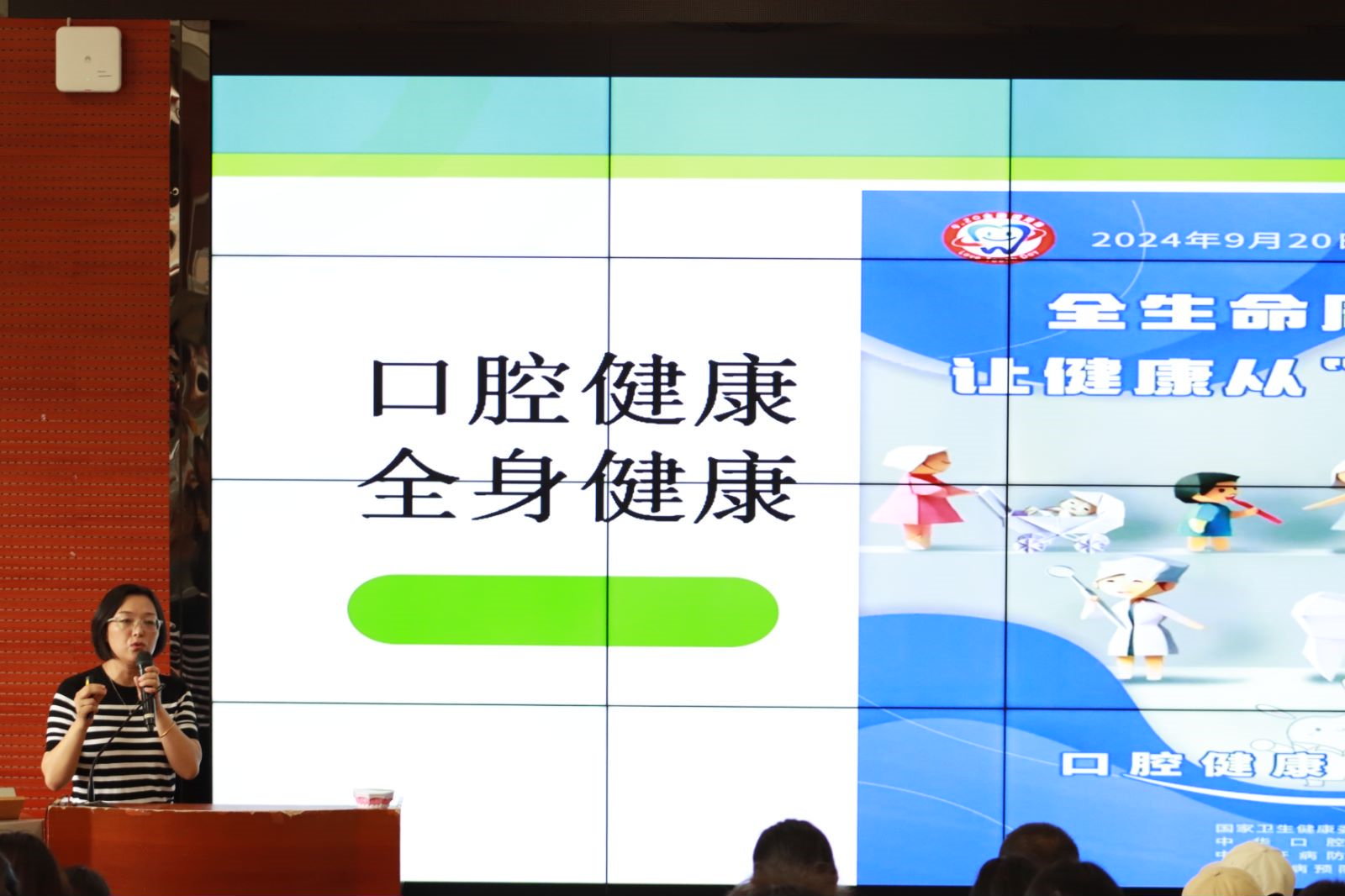 9月19日下午,学前教育学院在综合楼200教室举办口腔健康专题讲座,邀请市口腔医院副院长秦翠作报告。学院师生300人参加活动。