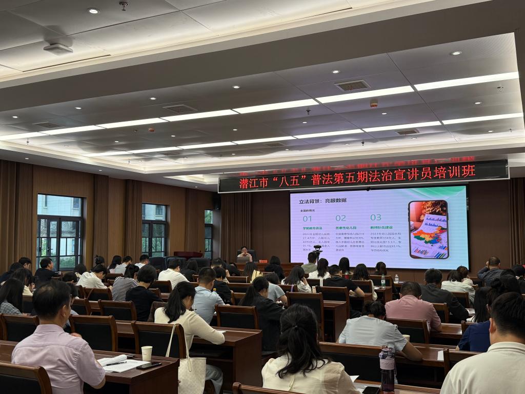 5月8日,潜江市“八五”普法第五期法治宣讲员培训班开班。beat365在线体育官网登录入口谭德刚副教授应市司法局邀请,为全市法治宣讲员作《学前教育法》专题培训。