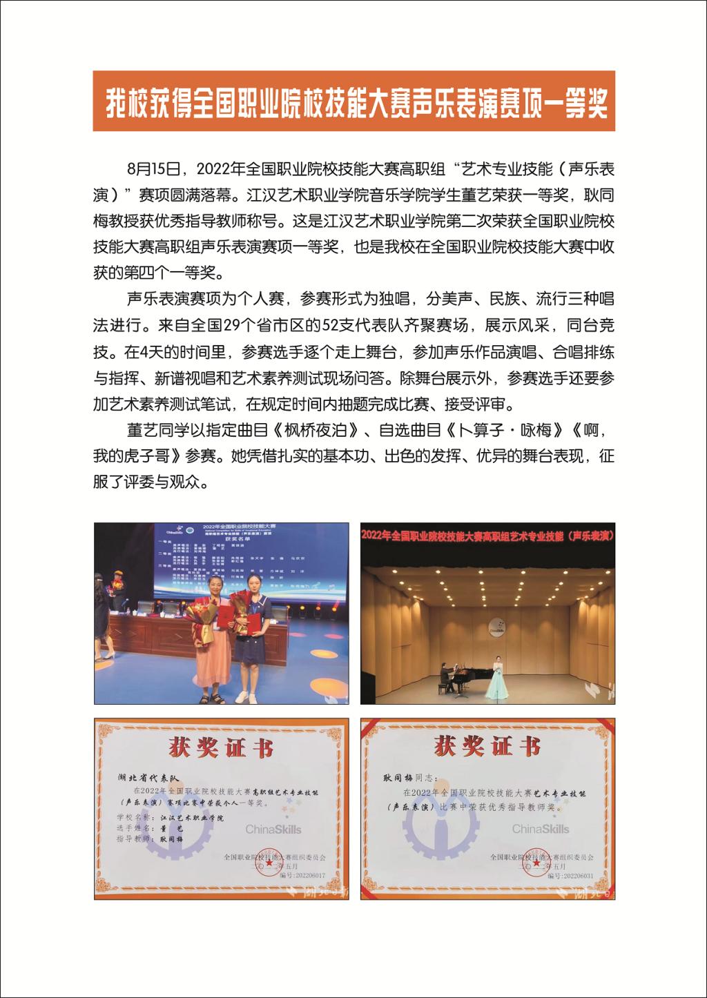 2022年第4期封二:beat365获全国职业院校技能大赛声乐表演赛项一等奖