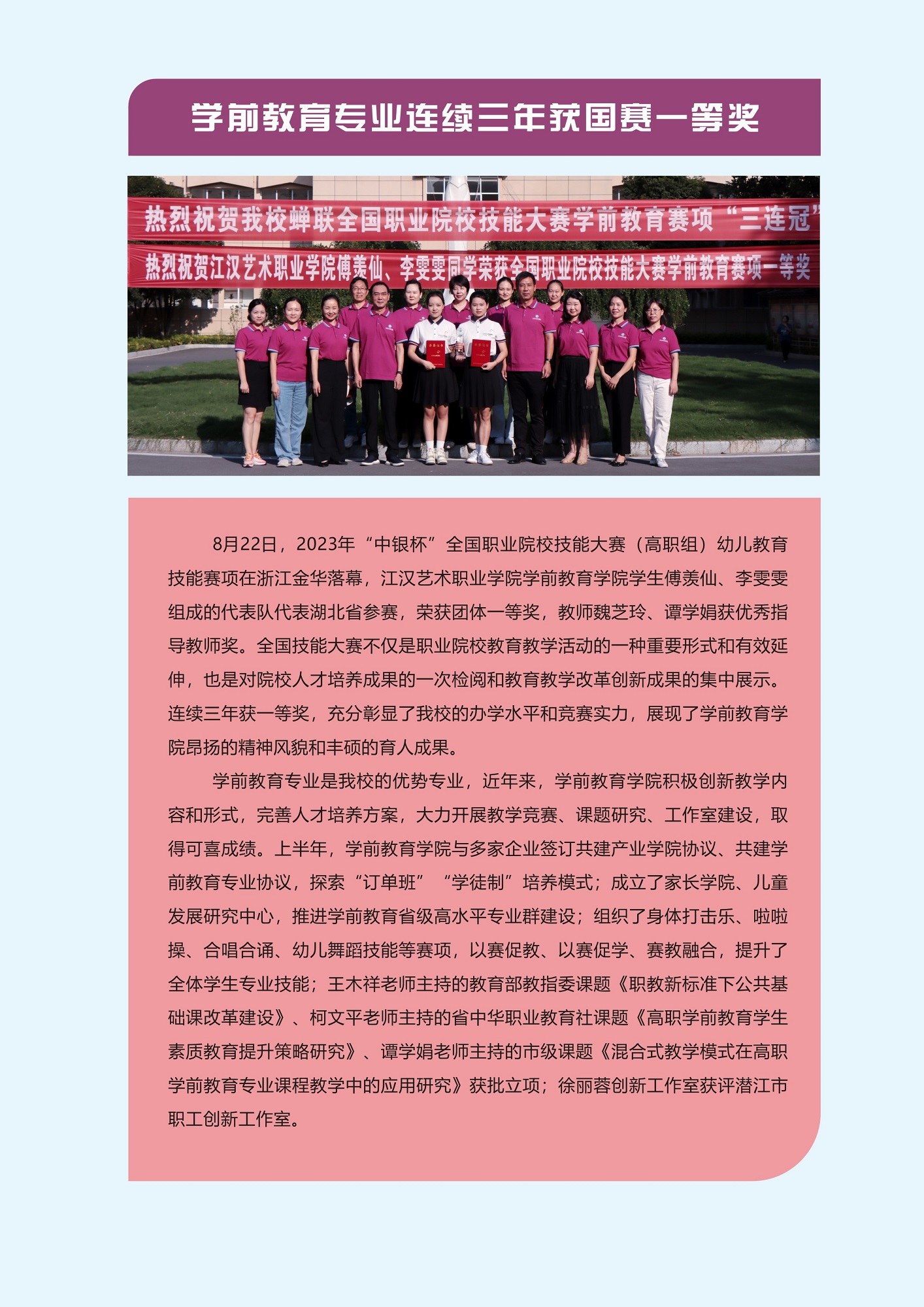 2023年第4期封二、封三:beat365学前教育专业连续三年获国赛一等奖
