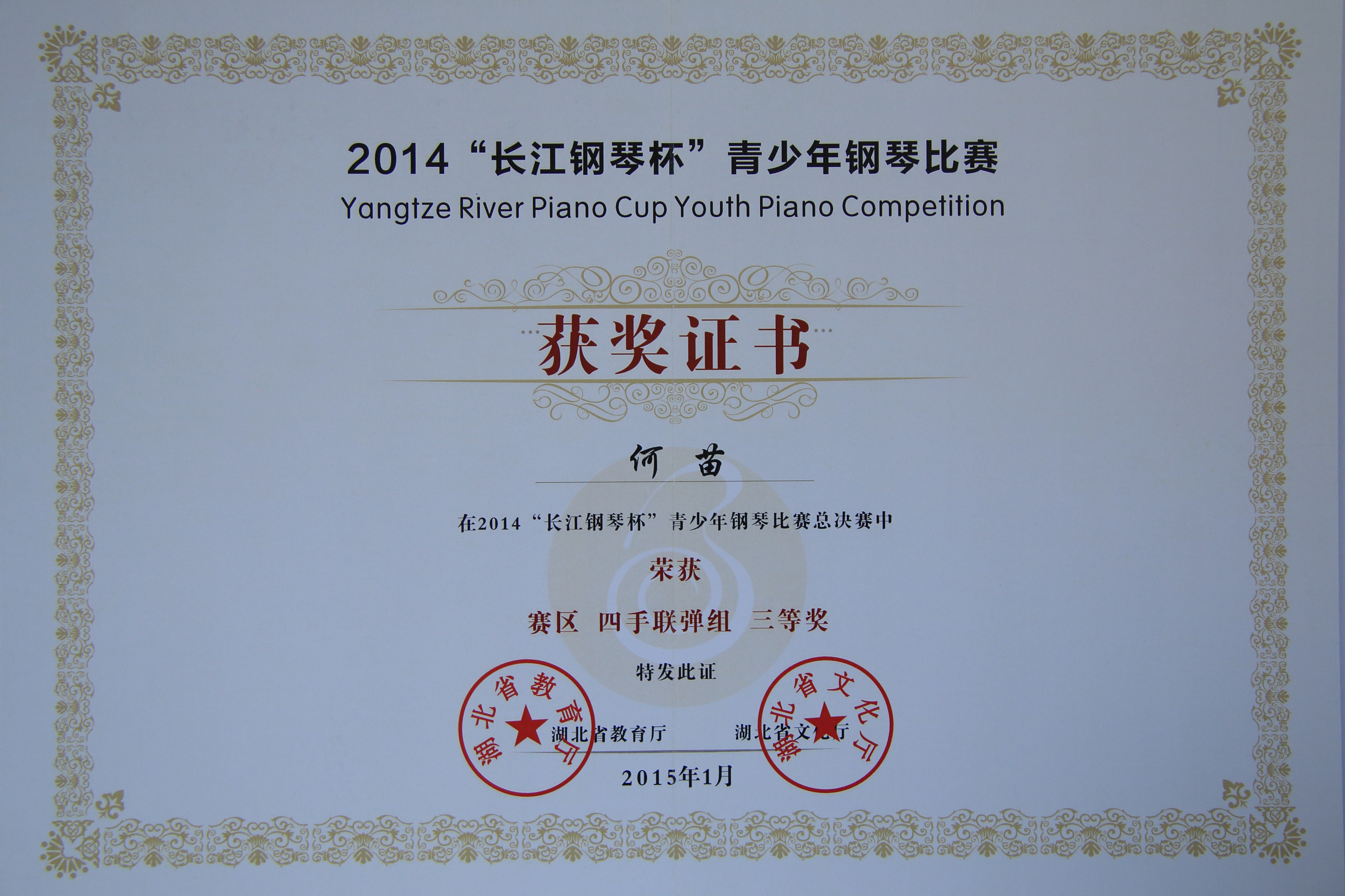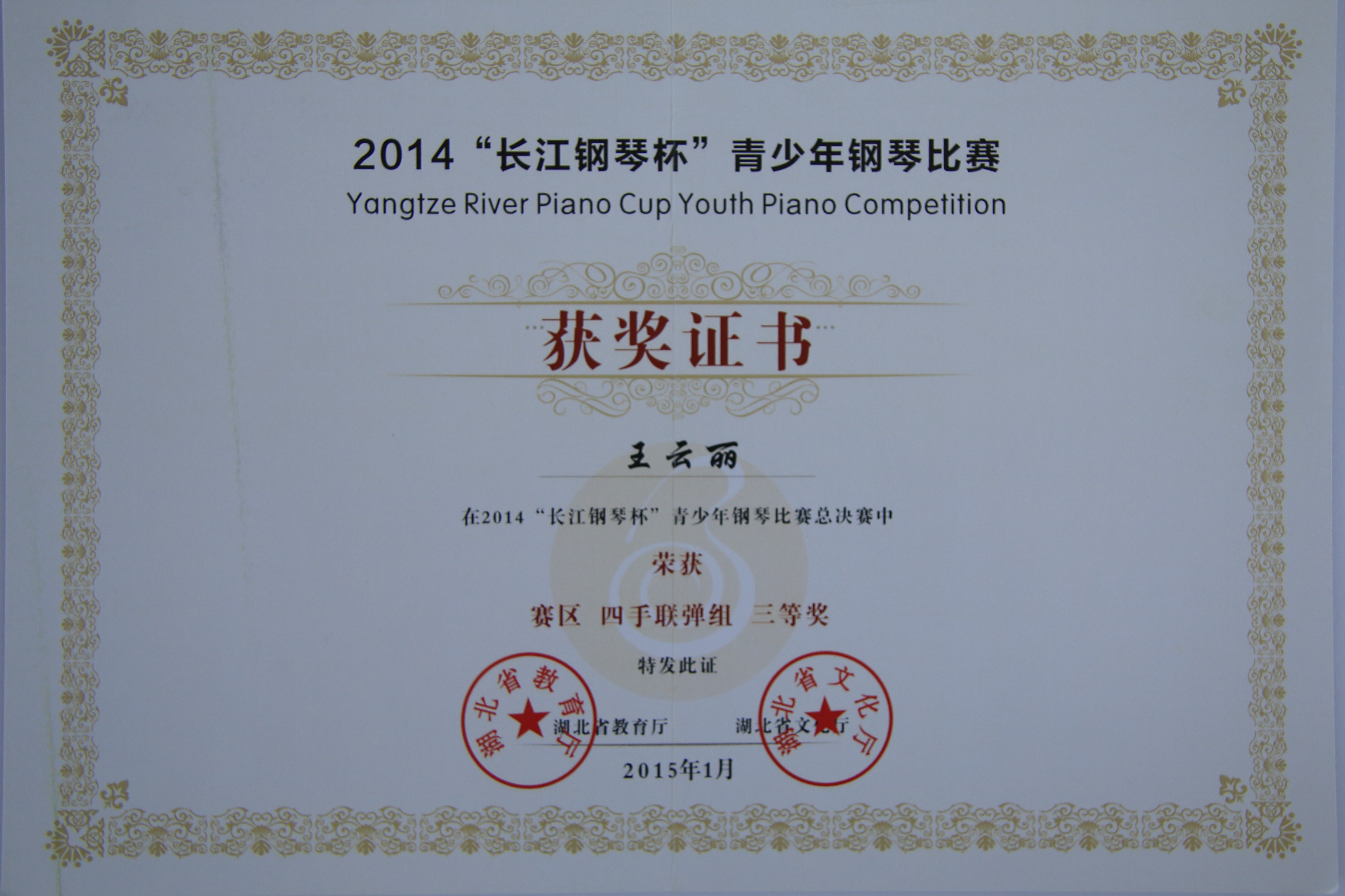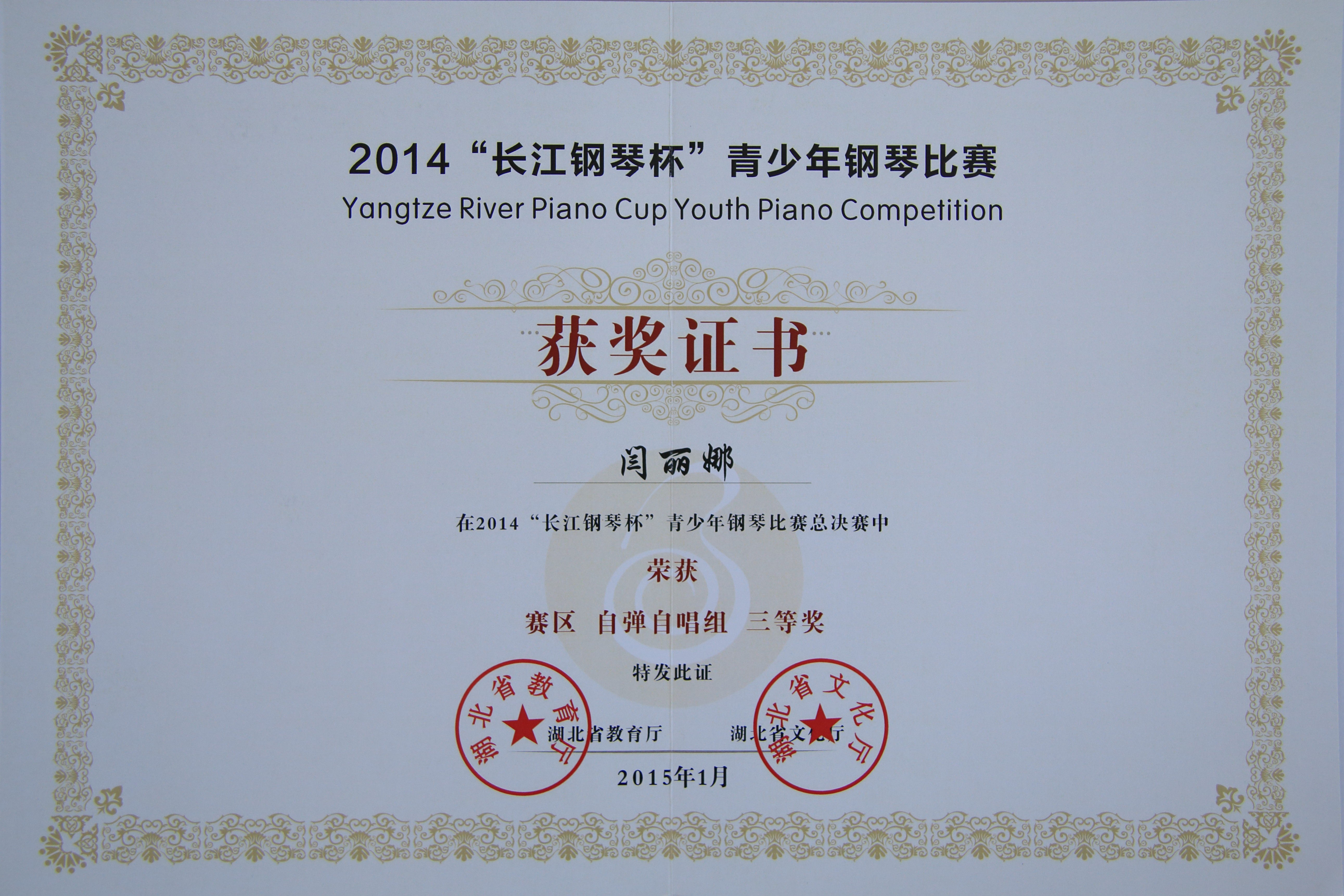 上一条:2014“长江钢琴杯”青少年钢琴比赛获奖证书2
