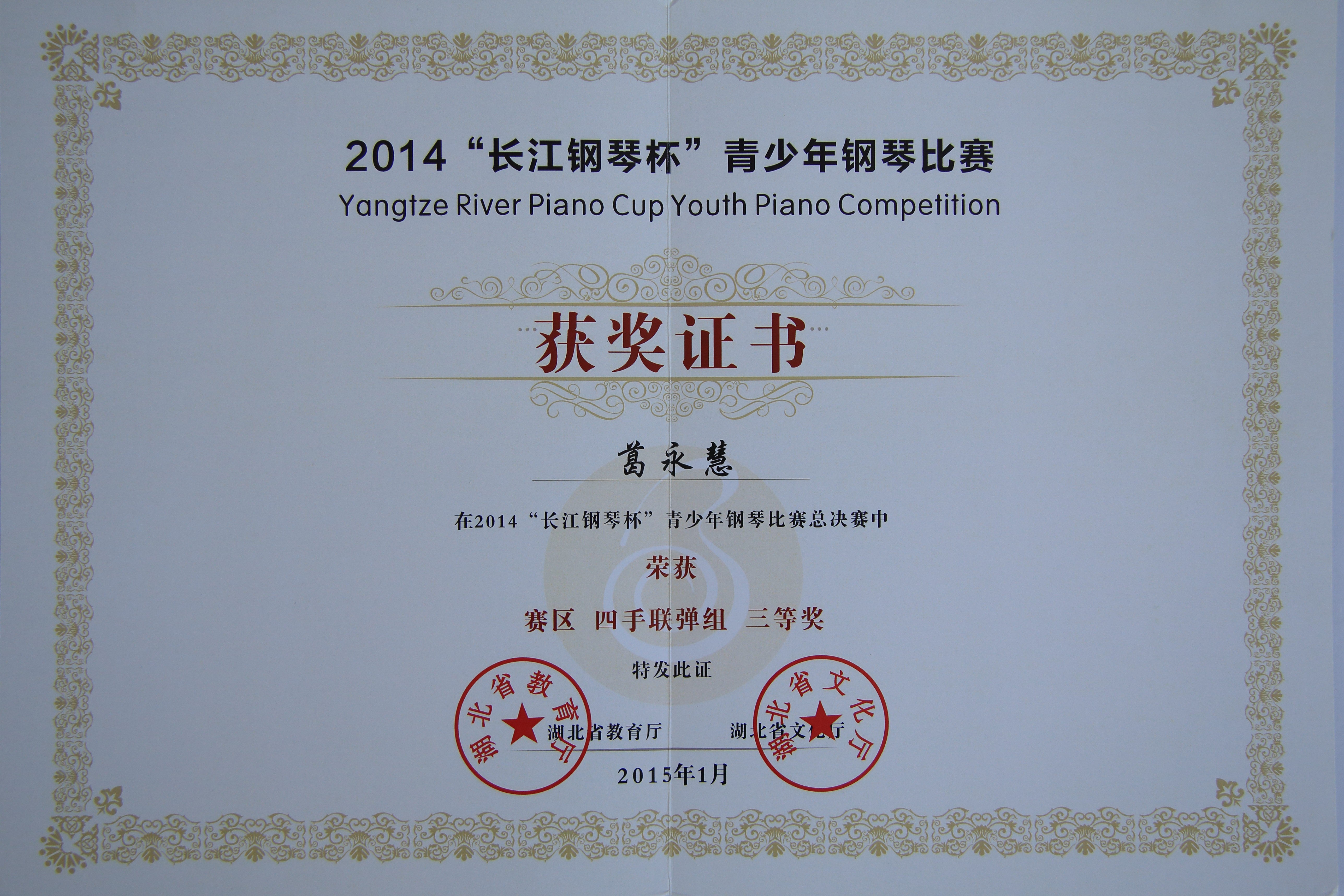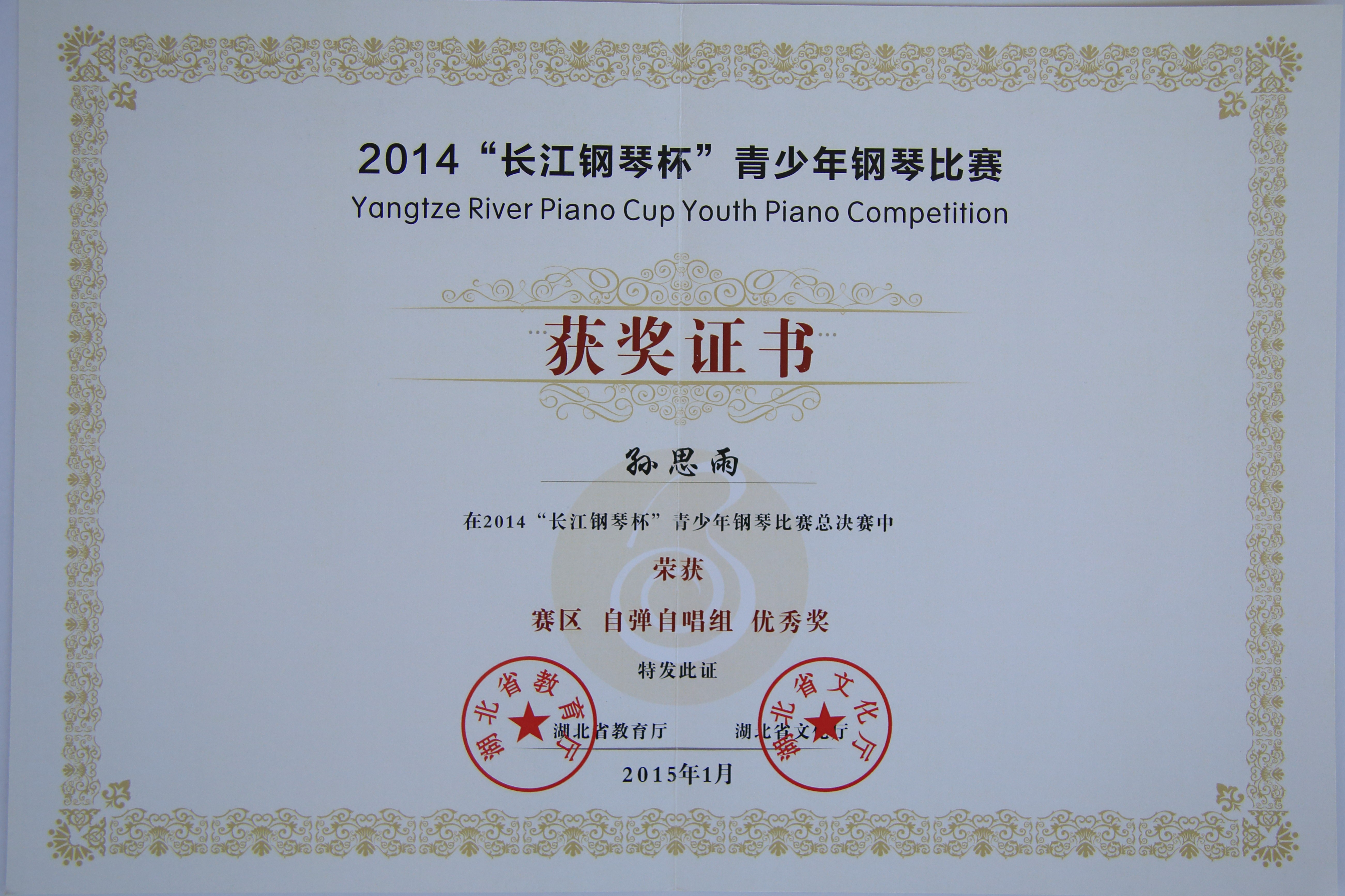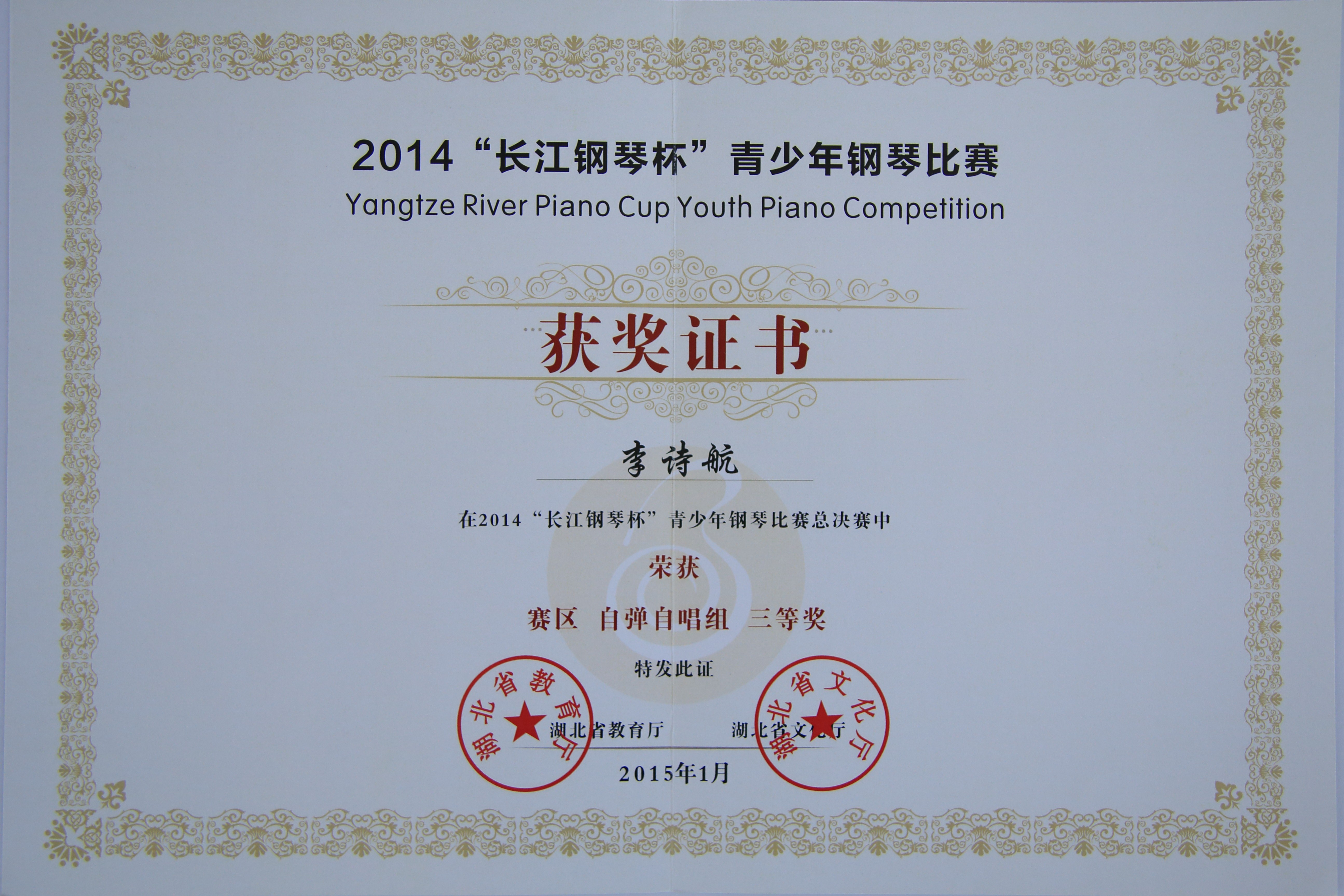 上一条:2014“长江钢琴杯”青少年钢琴比赛获奖证书2