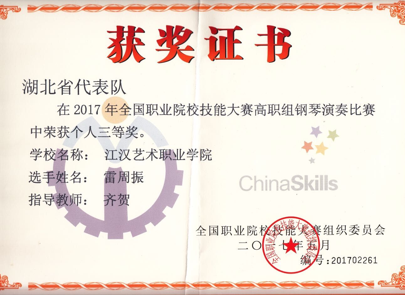 上一条:湖北省第六届大学生艺术节获奖证书